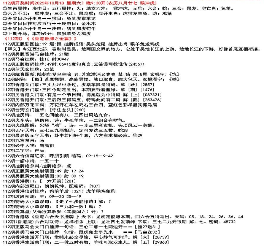 111期香港生活关门联:鸡前马后来一数,猴儿三心到娘家 解 【来】【38726】